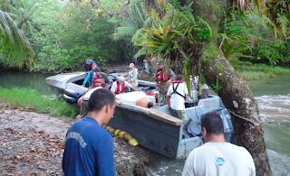 Two more rangers were in the boat were busily arranging the crates, filled with vegetables. I was put up front, on top of the meat coolers. My pack went below the lettuce. Just another item on the morning’s delivery list – that’s what I felt like, unable to understand a word of the conversation going on around me. Fragile. Handle with Care. This Side Up. I sat in the bow of the dinghy, thinking: what have I gotten myself into?